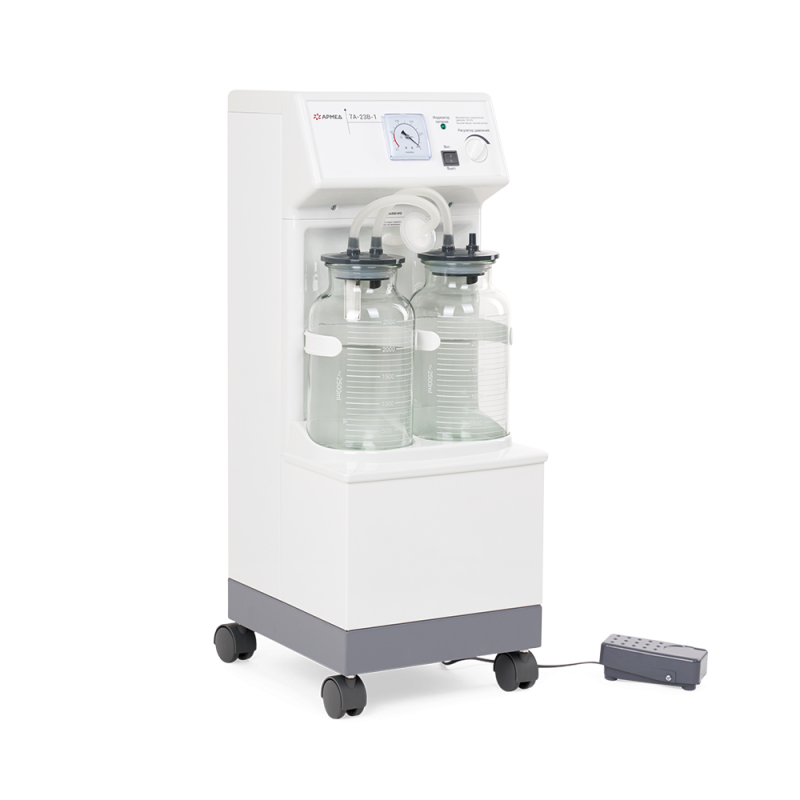 Простая и понятная панель управления включает всего 2 элемента: кнопка включения/выключения и регулятор давления.Прибор способен непрерывно работать в течение четырех часов, что позволяет использовать его при проведении длительных операций.Крышка одной из стеклянных банок-сборников имеет специальное защитное поплавковое устройство для защиты от перелива собранной жидкости.Для запуска без использования рук в комплектацию входит специальная ножная педаль.На корпусе аспиратора имеются прочные маленькие колесики, обеспечивающие удобное и безопасное перемещение устройства между помещений.В комплект к аспиратору Армед 7А входит металлический наконечник, который необходим при проведении полостных операций.