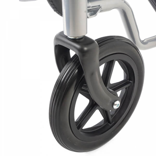 Благодаря размеру задних колес каталка проходит во все проемы, и в то же время они больше стандартных 8-дюймовых колес, что облегчает передвижение сопровождающему лицу.