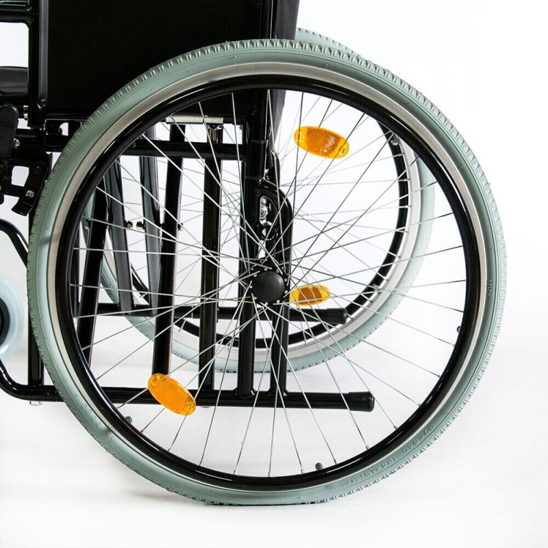 Несущие элементы и рама кресла-коляски модели сконструированы таким образом, чтобы обеспечить повышенную грузоподъемность и длительную безопасную эксплуатацию. Рама кресла-коляски выполнена из высокопрочной стали с лакокрасочным покрытием, которое защищает от коррозии и облегчает санитарную обработку. Важной особенностью кресла-коляски является особая конструкция рамы — ее складная часть состоит из двойной крестовины, которая позволяет равномерно распределить нагрузку на несущие элементы конструкции. Отметим, что конструктивной особенностью данной кресло-коляски является возможность регулировки высоты крепления задних и передних колес, что дает возможность настроить кресло-коляску для пользователей разного роста. Также данная функция позволяет отрегулировать угол наклона сиденья коляски, что обеспечивает больший комфорт при эксплуатации.
