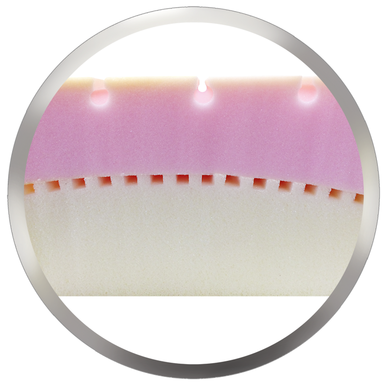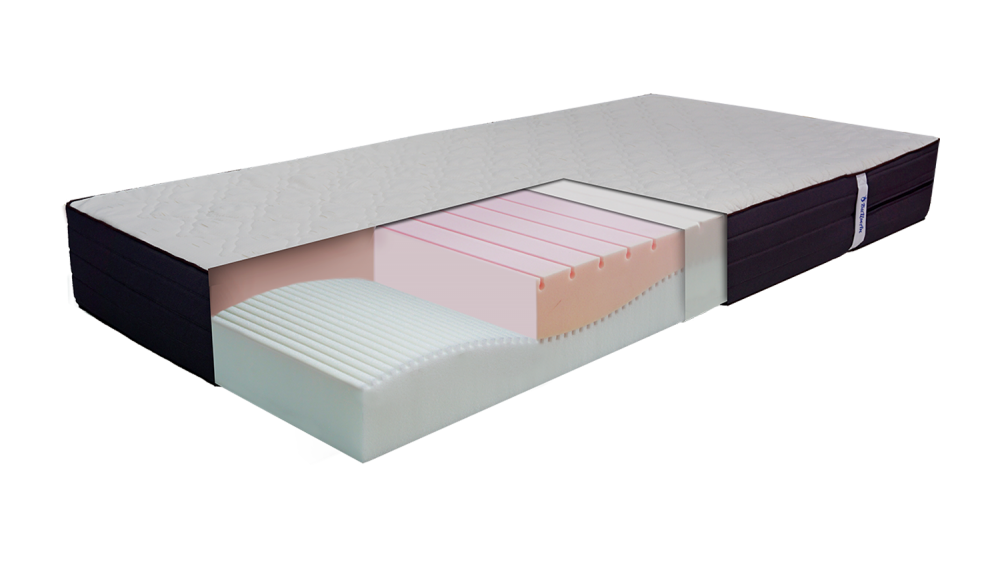 Матрац двухслойный, основа - из высокоэластичного пенополиуретана марки HR плотностью 30 кг/м3, верх - ППУ профильный ST, плотностью 25кг/м3. имеет каплевидную профильную резку, создающую поверхность, соответствующей нагрузке тела на неё по участкам и повторяя контуры тела оптимально распределяет нагрузку по всей поверхности, препятствует сдавливанию сосудов, повышая анатомический эффект матраса.Также обеспечивает циркуляцию воздуха, создавая комфортный микроклимат постели. Съемный чехол изготовлен из смессового жаккарда (70% хлопок, 30% полиэстер) плотностью 510-610 гр/м2. Чехол оснащен застежкой-молния. Инновационный метод распределения нагрузки за счет профильной эргономичной формы