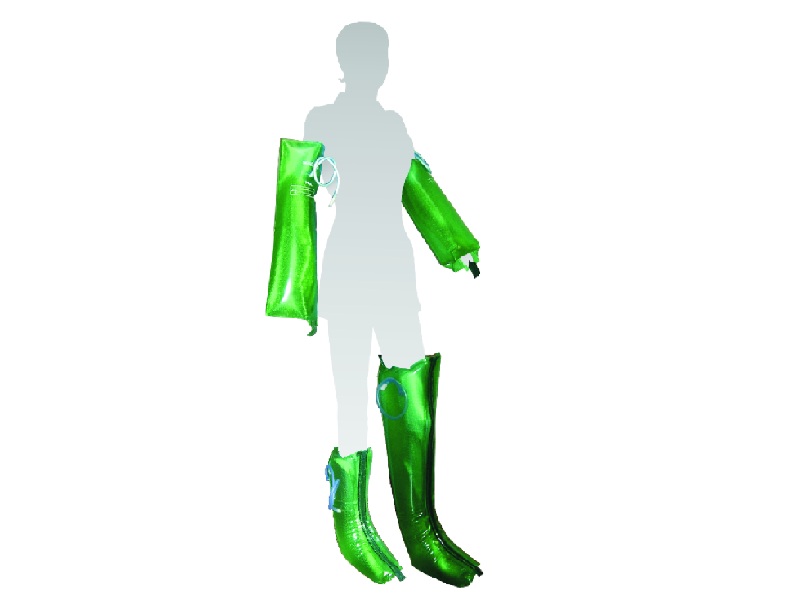 Шины пневматические - необходимы при переломах, подозрениях на переломы стопы, предплечья, голени, локтевого или коленного суставов. Помогают создать неподвижность поврежденной конечности на время транспортировки до лечебной организации. Наложение шин не предусматривает снятие обуви или одежды. Состав: рукав, сапог, упаковка-подушка, головка клапана + основание клапана, насос пневматический.