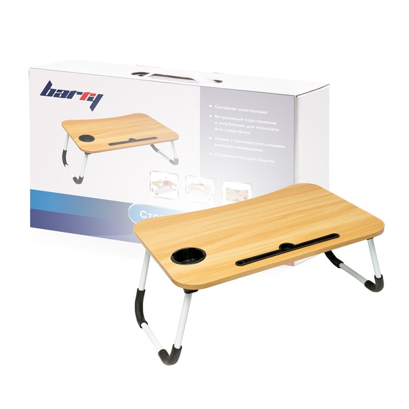 Столик Barry Porta – компактное и функциональное дополнение для вашей кровати. Он разнообразит вашу деятельность, так как поможет вам комфортно работать на ноутбуке, читать книги или заниматься любой другой творческой или письменной активностью. Кроме того, изделие позволяет совершить прием пищи прямо на кровати. Специальное углубление может быть использовано как для хранения мелких предметов, так и для установки планшета. Также столик оборудован подстаканником с внутренним диаметром в 8 см.