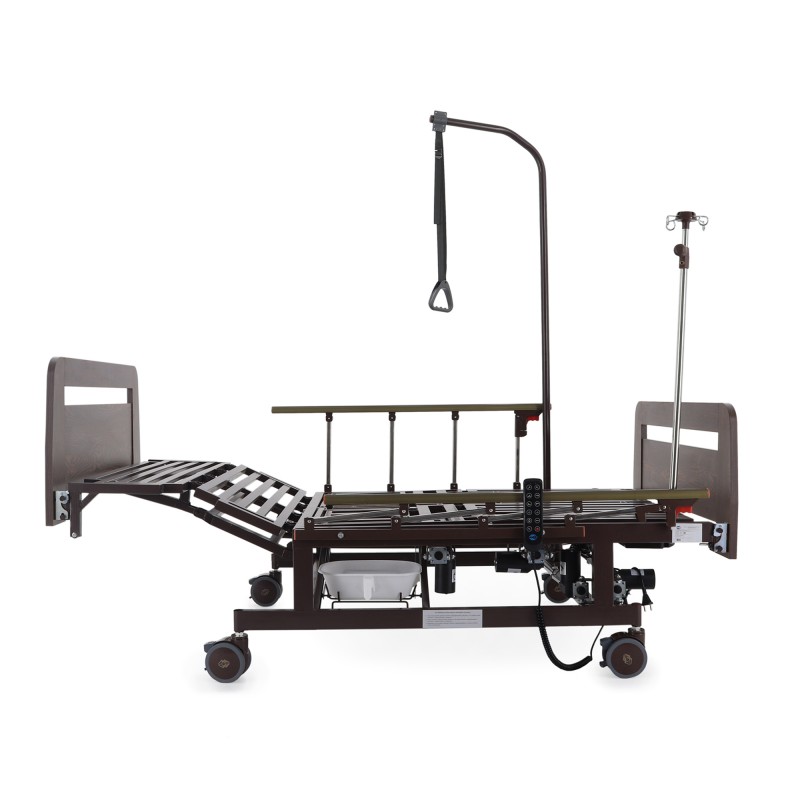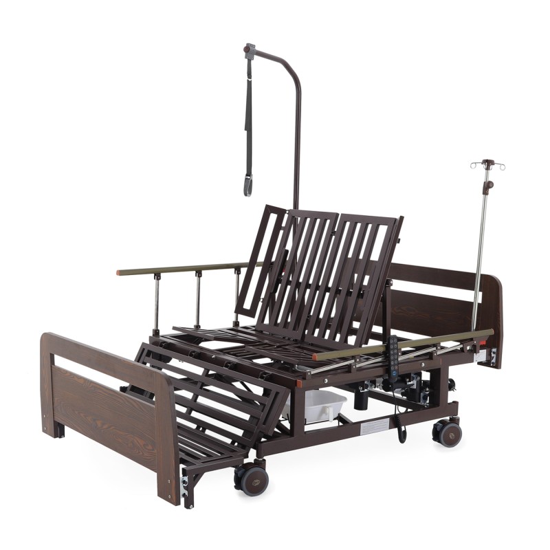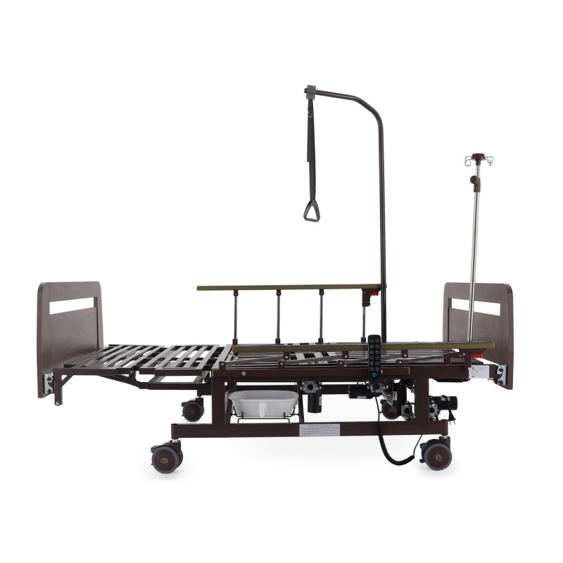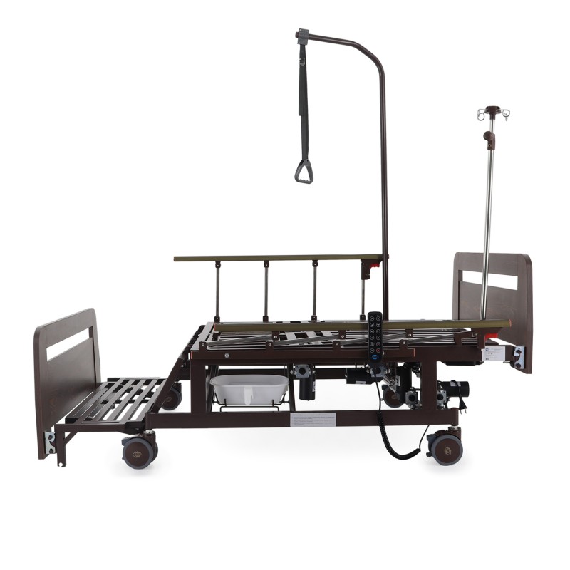 Кровать электрическая Med-Mos DB-11А (артикул DB-11А / МЕ-5528Н-05, Партия: 01DE080301-75/DE) – современное функциональное медицинское устройство, разработанное для обеспечения комфорта и удобства ухода за пациентами. Модель оснащена электрическими приводами, функцией бокового переворачивания, туалетным устройством xBIO II с судном и крышкой, а также функцией «кардиокресло». Торцевые спинки выполнены из ЛДСП в цвете венге, что придает кровати элегантный вид, подходящий для медицинских учреждений и домашнего использования. Новый прикроватный столик из ЛДСП дополняет комплектацию, обеспечивая дополнительное удобство.