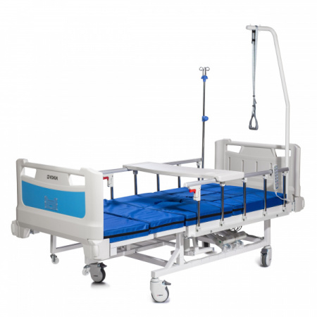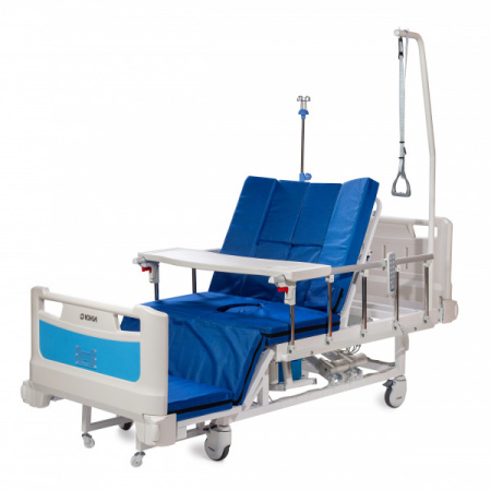 Кровать медицинская электрическая ЮКИ А35 - отличается эргономичностью и широким функционалом. Она совмещена с кардиокреслом, позволяющим пациентам принимать удобное положение во время проведения процедур, системой бокового переворачивания и туалетным устройством.