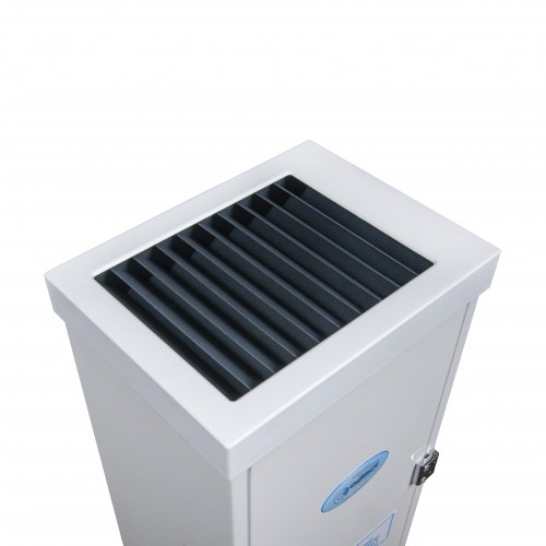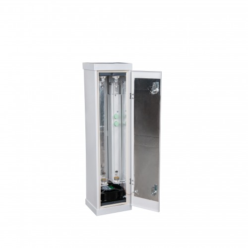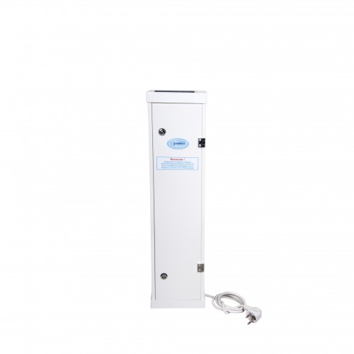 Аппараты могут быть размещены по периметру стен в помещении как в вертикальном, так в горизонтальном положении на высоте 1,5–2 м от пола. Рекомендовано: устанавливают на стену вертикально, желательно на правой стороне стены относительно двери, или горизонтально, так что бы открытая дверца не препятствовала процессу обеззараживания воздуха. Передвижная платформа поставляется отдельно. Перед использованием ВАЖНО ознакомиться с паспортом прибора.