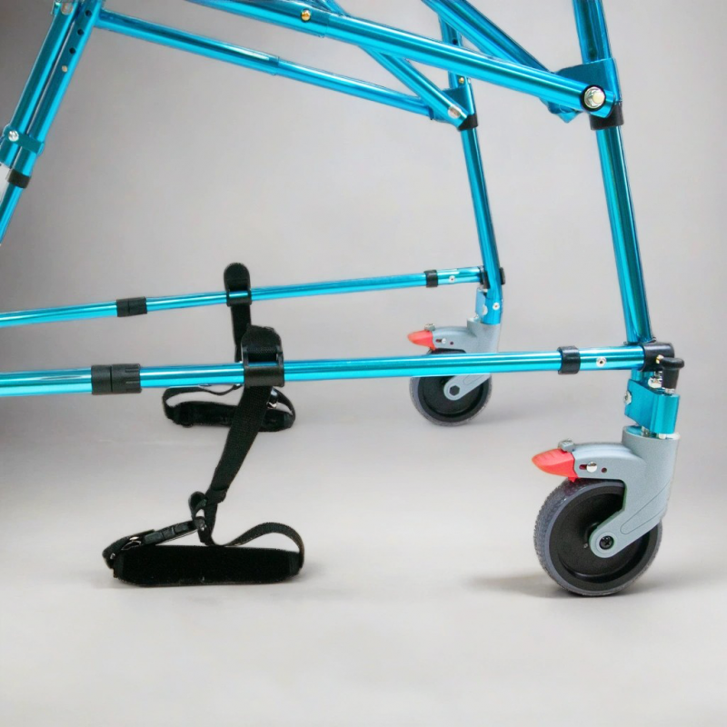 Ходунки на четырех колесах реверсивного типа предназначены для детей-инвалидов, страдающих различными формами ДЦП, способствуют устранению нарушений осанки и патологической установки стоп, помогают удерживать равновесие при ходьбе и стоянии.