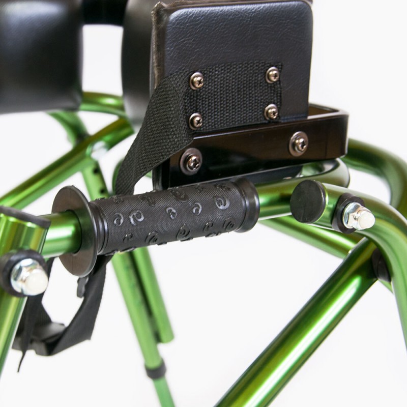 Подлокотные опоры ходунков фиксируют предплечья в удобном положении, позволяя при этом держаться руками за рукоятки с нескользящим покрытием; угол наклона рукояток можно изменять от вертикального до горизонтального положения.