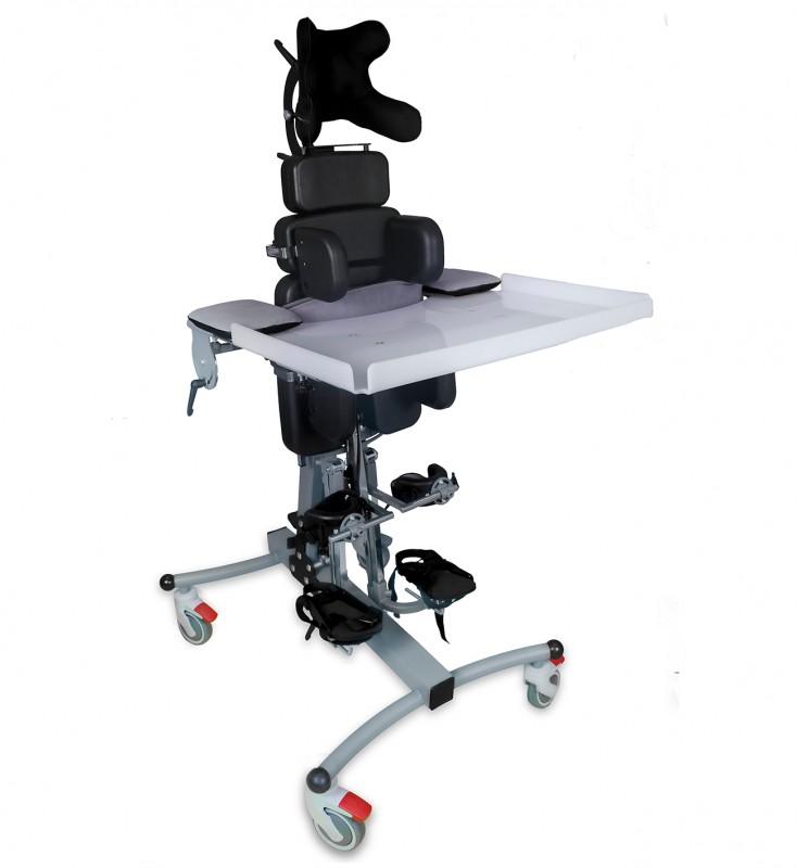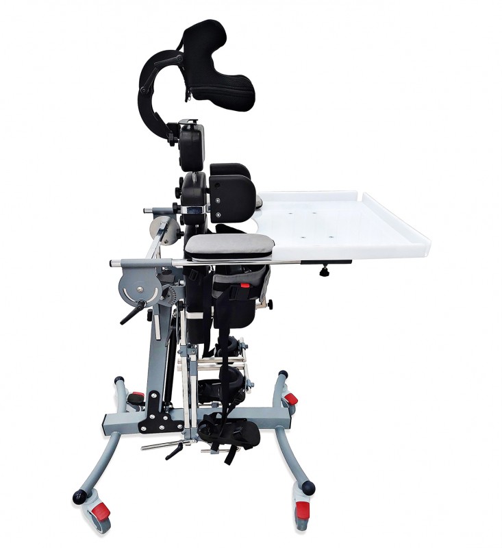 Целью является – дать пациенту возможность поддерживать вертикальное положение и развивать готовность к ходьбе, удерживаясь обеими руками. Изделие укомплектовано полным набором приспособлений для фиксации различных частей тела в правильном положении.