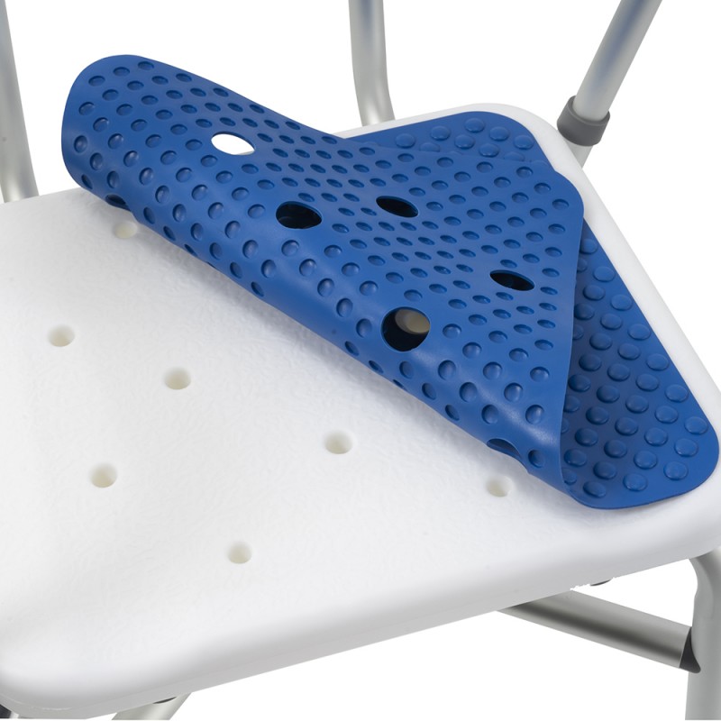 Спинка изготовлена из прочного, гигиеничного пластика, устойчивого к влаге и механическим повреждениям, что делает использование стула еще более комфортным. В комплекте противоскользящий коврик для сиденья.