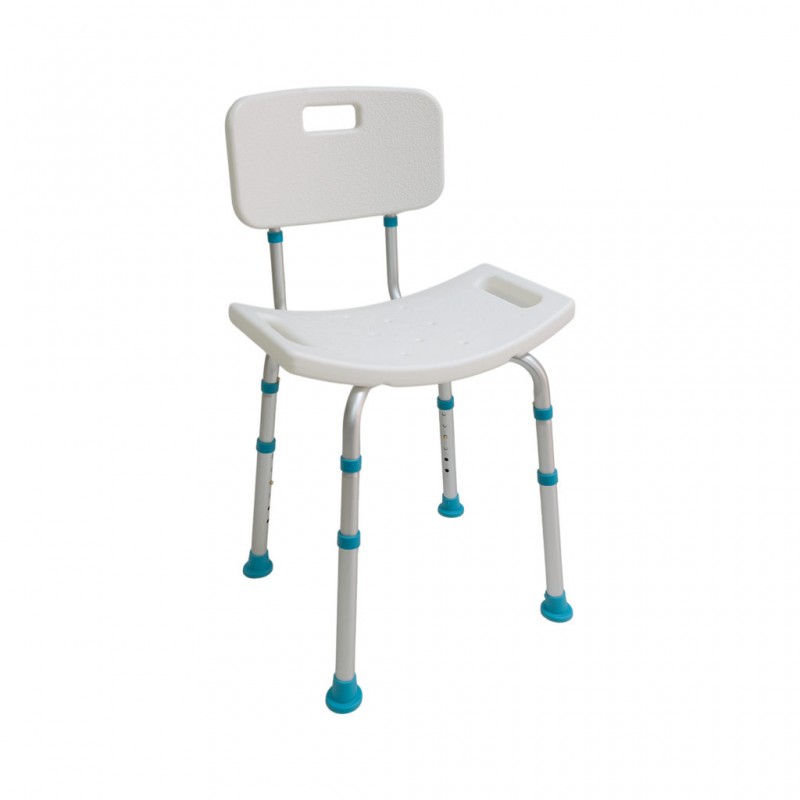 Конструкция стула выполнена из прочного алюминиевого каркаса, устойчивого к влаге и коррозии. Сиденье и спинка изготовлены из нескользящего пластика с дренажными отверстиями для быстрого стока воды. Высота ножек регулируется, что позволяет адаптировать изделие под индивидуальные потребности пользователя. Съемные подлокотники оснащены мягкими накладками. Резиновые наконечники обеспечивают надежное сцепление с поверхностью, предотвращая скольжение. Стул лёгкий, устойчивый и прост в уходе — идеальный помощник для ежедневного использования в ванной комнате.