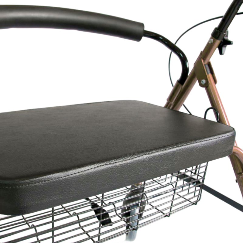 Конструкция ролятора с повышенной грузоподъемностью выполнена из алюминия с полимерным покрытием, сиденье обшито искусственной кожей. Ролятор оборудован двумя ручными тормозами задних колес c фиксирующей функцией, расположенных на ручках конструкции. Ручки имеют рифленую форму и не скользят в ладонях; регулируются по высоте. Под сиденьем закрепляется вместительная корзина для личных вещей и продуктов. Опору для спины можно отсоединить, если ролятор не используется в качестве стула. Ролятор складывается и не занимает много места дома или при транспортировке.