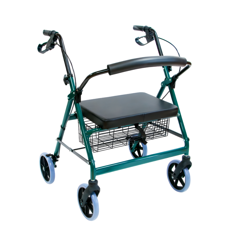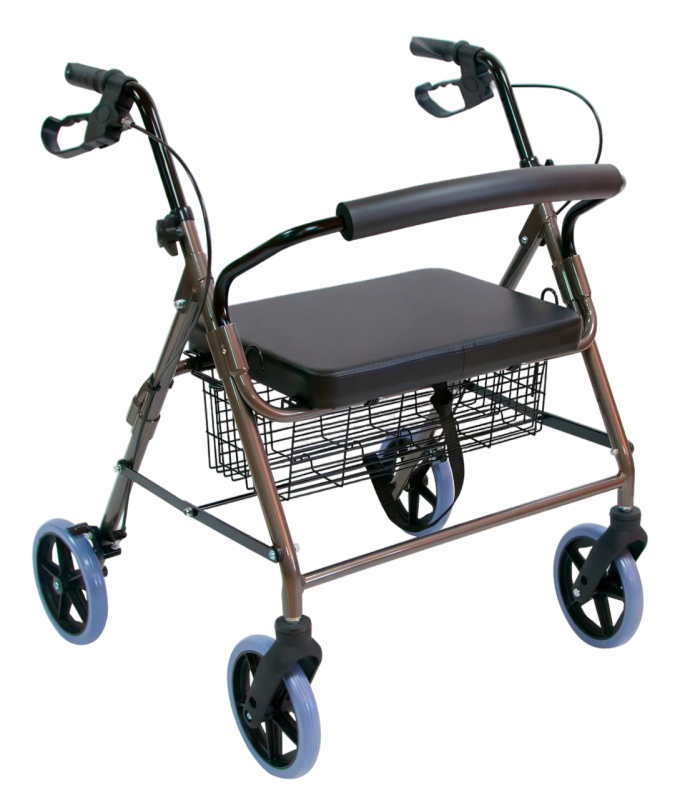 Конструкция ролятора с повышенной грузоподъемностью выполнена из стали с полимерным покрытием, сиденье обшито искусственной кожей. Ролятор оборудован двумя ручными тормозами задних колес c фиксирующей функцией, расположенных на ручках конструкции. Ручки имеют рифленую форму и не скользят в ладонях; регулируются по высоте. Под сиденьем закрепляется вместительная корзина для личных вещей и продуктов. Опору для спины можно отсоединить, если ролятор не используется в качестве стула. Ролятор складывается и не занимает много места дома или при транспортировке.
