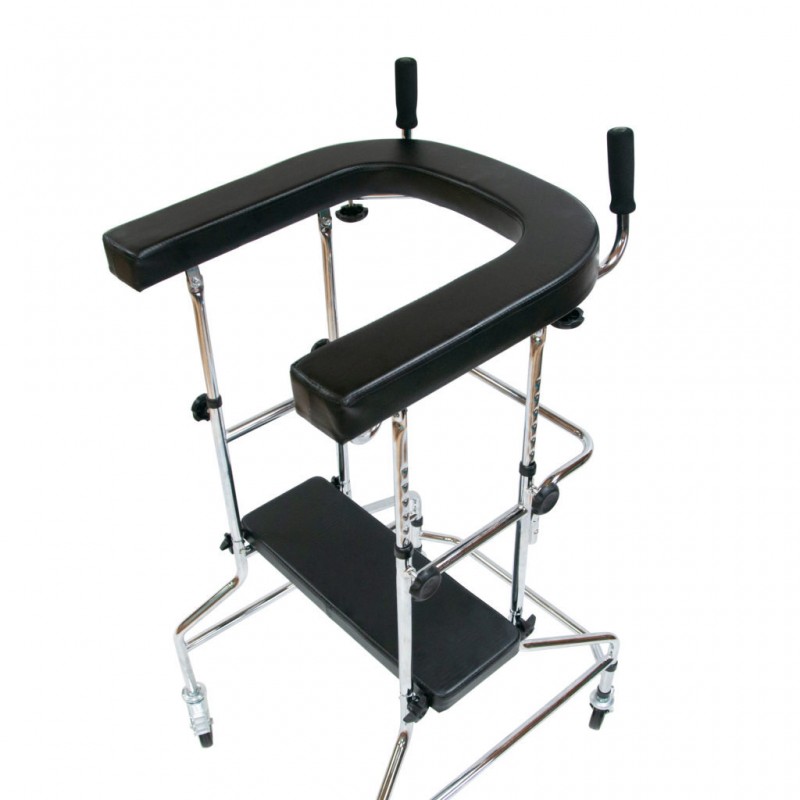 Ходунки предназначены для людей с инвалидностью, пожилых людей и больных, проходящих реабилитацию. Позволяют сохранять равновесие, улучшают координацию движений и уменьшают нагрузку на ноги. Модель оснащена U-образной подлокотной опорой, которая позволяет ставить на нее локти и предплечья, тем самым снимая нагрузку с мышц и суставов ног.